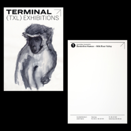 Terminal (TXL) is the first of an exhibition series that deals with our contemporary condition of being in a terminal state of transit. Airport terminals and aesthetics become a program in effect. The first installation, held in the Postwerk Berlin near Tegel Airport, comprised three solo exhibitions by artists Gunnhildur Hauksdóttir, Rebecca Erin Moran and Borghildur Indriðadóttir, with topics ranging from monkey communication to hypnotherapy and the unknown knowledge of the ocean.